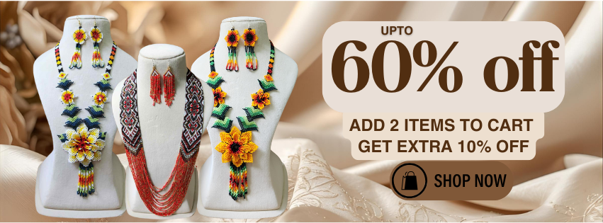 Our long bead necklaces are statement pieces that add elegance and flair to any ensemble. Whether featuring intricate geometric beadwork or flowing floral patterns, these necklaces exude sophistication and charm. Crafted with a mix of bead loom designs and freehand artistry, each necklace is paired with coordinating earrings to provide a cohesive and polished look. These pieces are perfect for layering with western outfits, Indo-western attire, or even traditional sarees. Discover more on our Short Bead Necklaces Page.