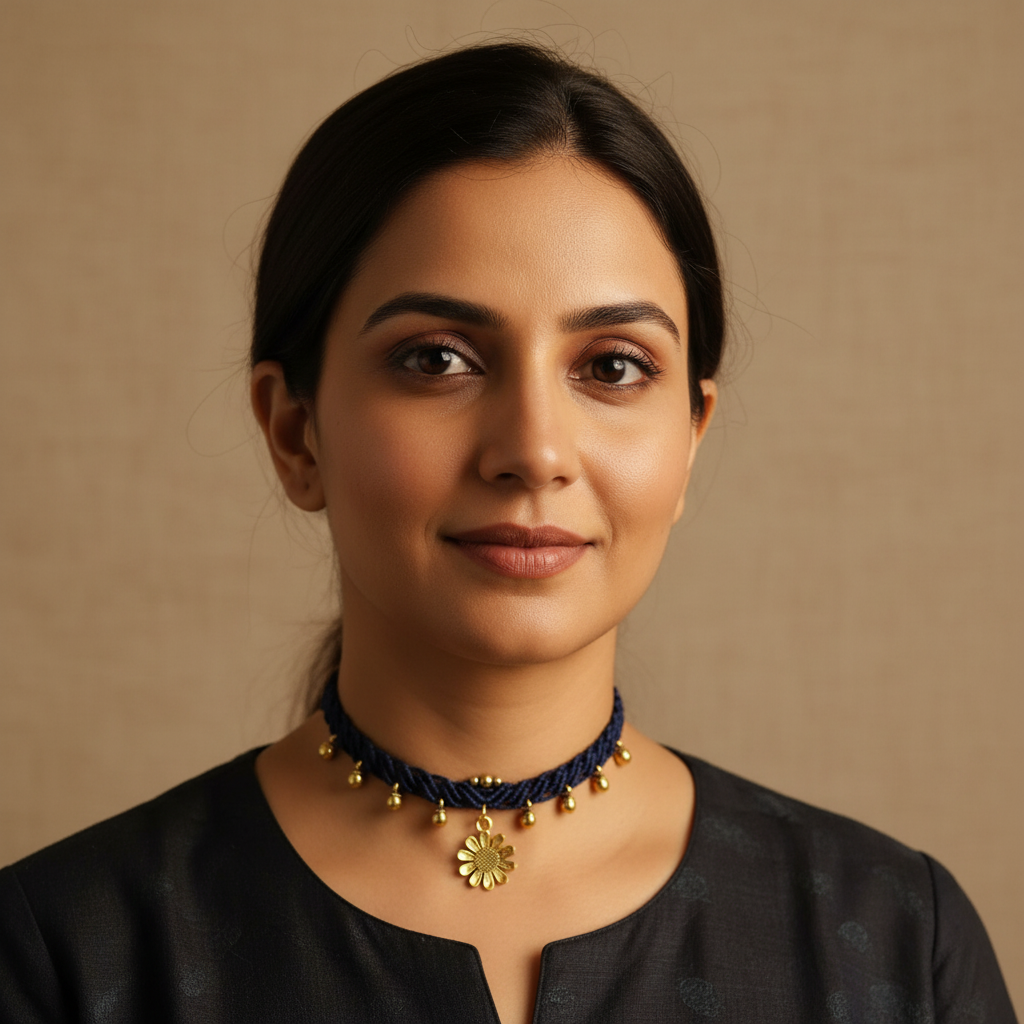 This necklace can be customized with silver charms and in any yarn colour. For customization, please DM me or whatsapp with a screenshot at 9944952710.